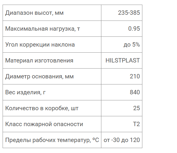 Высокая степень устойчивости регулируемых опор HILST обеспечивается увеличенной площадью их основания до 346 см2