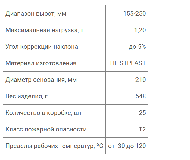 Высокая степень устойчивости регулируемых опор HILST обеспечивается увеличенной площадью их основания до 346 см2