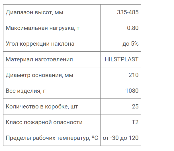 Высокая степень устойчивости регулируемых опор HILST обеспечивается увеличенной площадью их основания до 346 см2